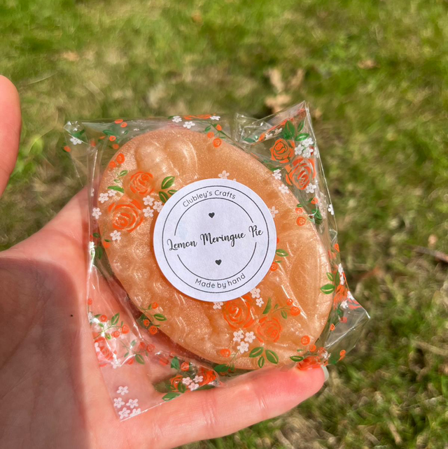 Introducing our Lemon Meringue Pie Soap for hands that cleanses and nourishes your skin with a sweet and tangy twist. This artisanal soap is made with high-quality ingredients and natural lemon fragrance that helps remove dirt and impurities from your skin while keeping it hydrated and moisturized. The invigorating lemon aroma leaves your hands feeling fresh, revitalized, and delicately scented. Perfect for everyday use, this soap is gentle and suitable for all skin types. Indulge in a refreshing cleanse and treat your hands to a guilt-free dessert with our Lemon Meringue Pie Soap.